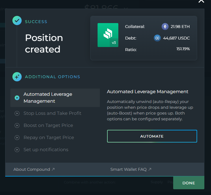 You're now well equipped to efficiently manage your Compound position on DeFi Saver!