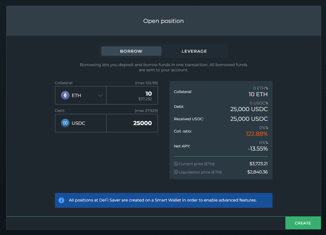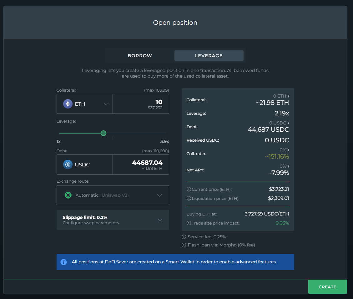 Whether you're ready to open a Borrow or Leverage position - the finishing touch will be clicking "Create"