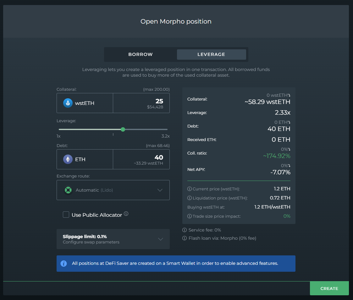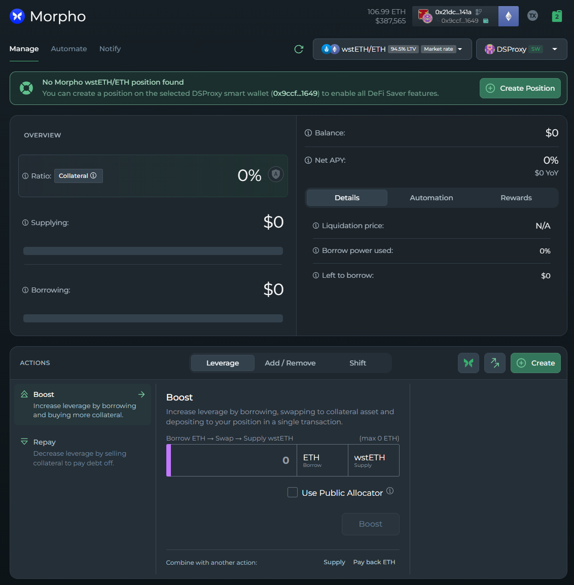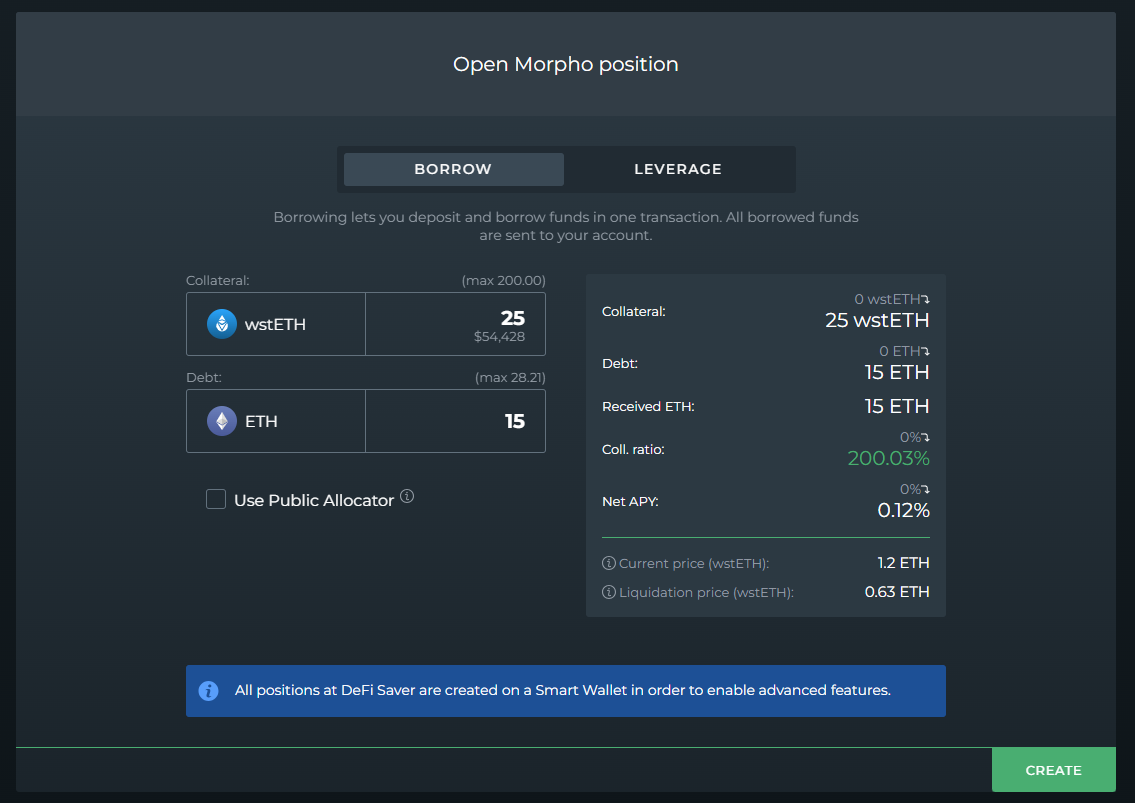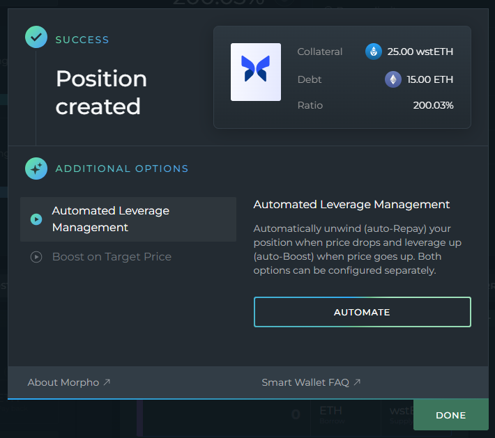 *Additionally, managing your Morpho position through DeFi Saver provides you with numerous tools that help you increase/decrease leverage in one transaction, or even change the protocol your position is on.*&#x20;